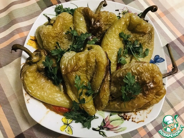 Перец готов. Солим по вкусу. Посыпаем зеленью.