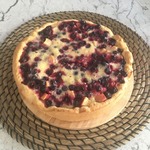 Далее выложить на тесто смородину и распределить по всей его поверхности.