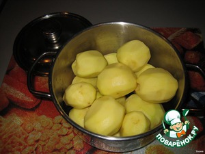 Очистить некрупный картофель, сварить в подсоленной воде целиком, до готовности.