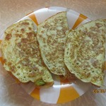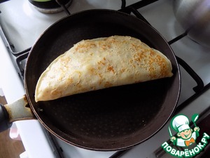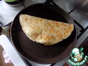 Перегибаем блин, т е накрываем овощи второй половиной окружности блина.