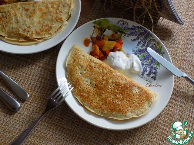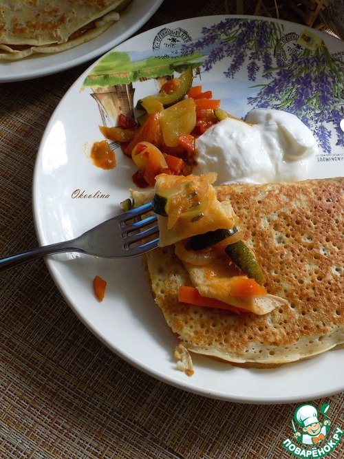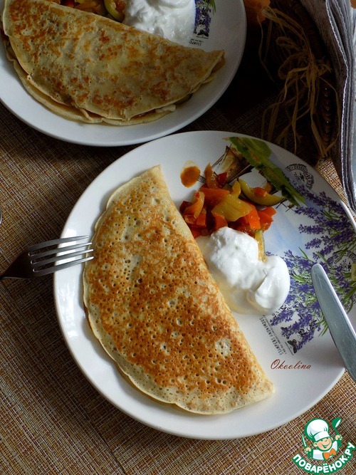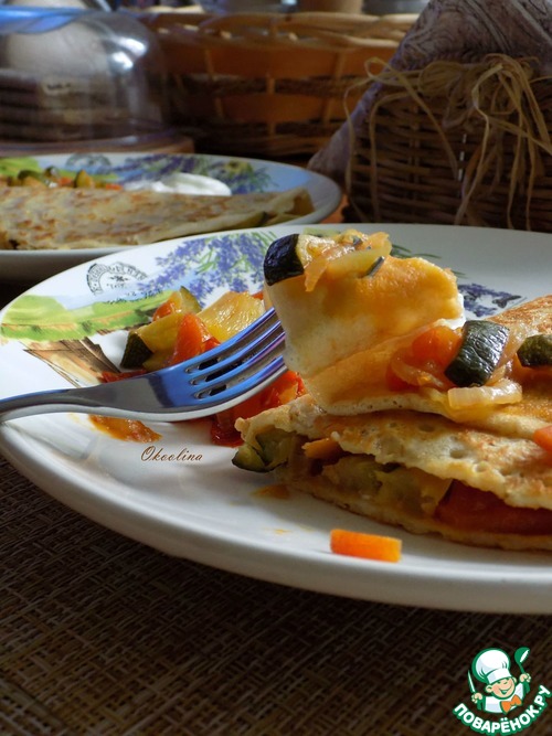 Рецепт «Овсяные блины с овощами и брынзой»: