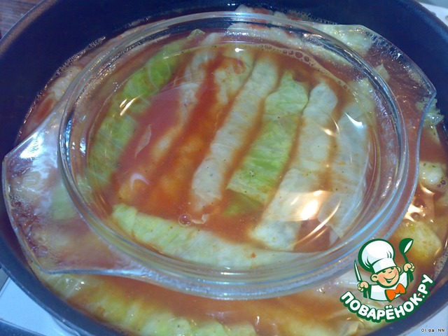 После закипания уменьшаем огонь, кладем сверху груз и варим до готовности минут 45-50.