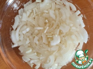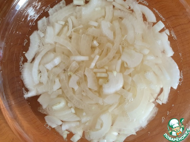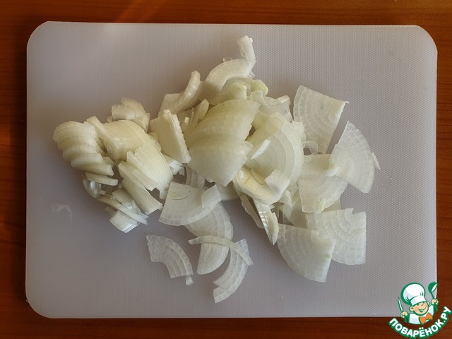 Почистить и нарезать лук четверть кольцами.