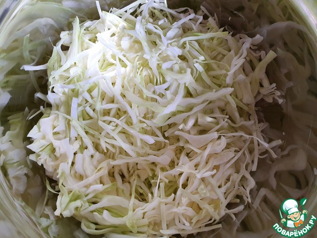 Тонко нашинковать капусту.