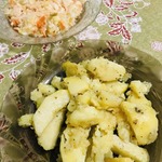Переложите картофель в миску. Добавьте чеснок, сушеную зелень, соль, перец и масло.