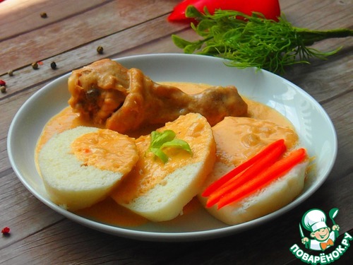 Тот, кто бывал в Чехии и знаком со здешней кухней знает, что чешская кухня очень вкусная и сытная. Особое место в ней занимают различные соусы к мясу, их очень много, подаются они с неизменным кнедликом. Сегодня я представлю на ваш суд курочку с очень, ну прямо очень вкусным соусом. На гарнир за неимением кнедликов можно подать макаронные изделия, рис, гречку и т. д., особенно вкусно будет с ньоками или клецками.