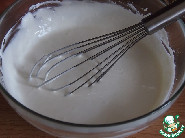 Куски готовой курицы вынуть из кастрюли. В миске смешать сметану, сливки и три столовых ложки с горкой муки.