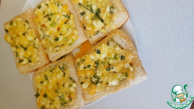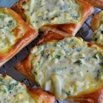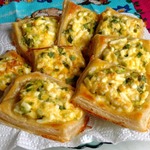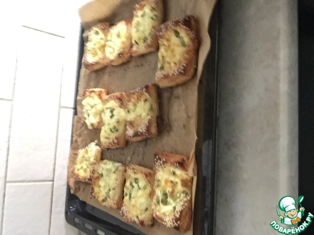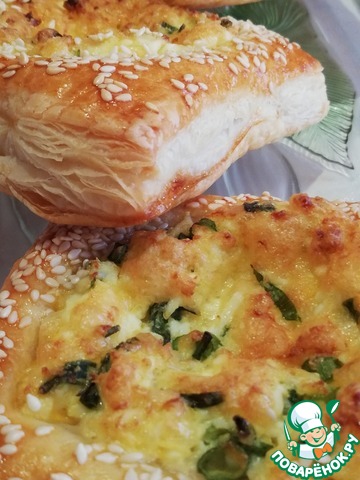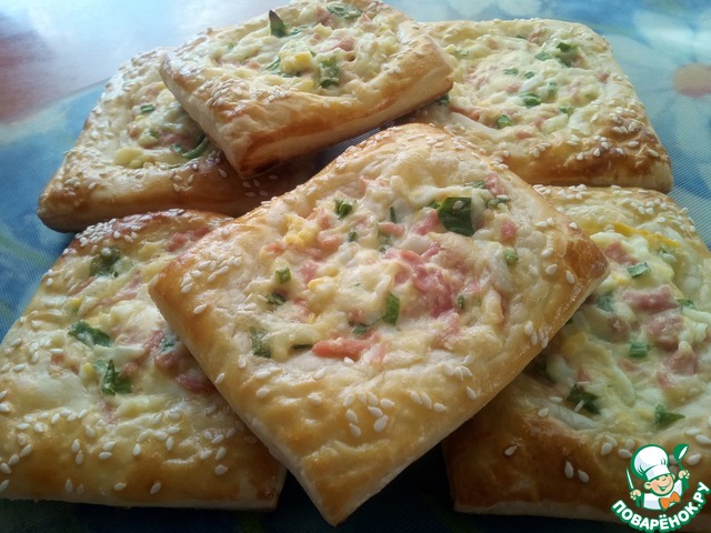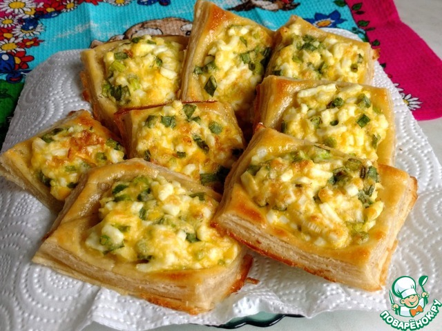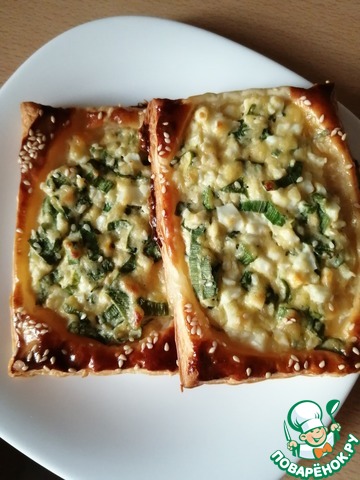 Одинаково вкусно как со слоеным бездрожжевым тестом, так и со слоеным дрожжевым.