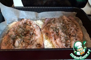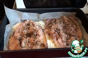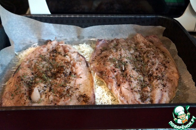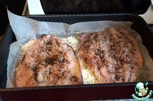 Уложить рыбу кожей вниз.