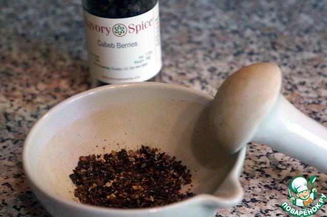 Перец кубеба или просто черный горошек растолочь в ступке.