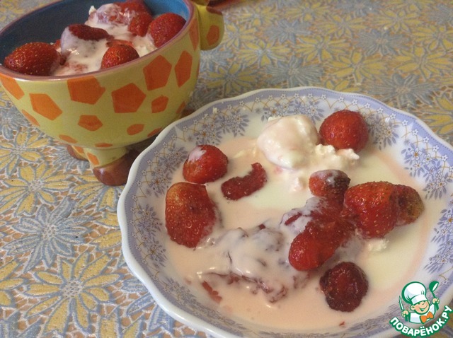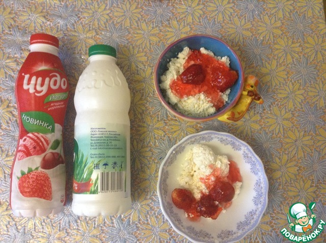 Добавляем кефир и творог. Все! Ваш идеальный, вкусный завтрак готов. Клубничного лета;3