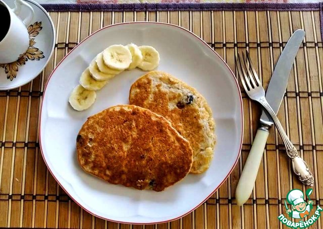 Бесподобные диетические блинчики из овсяных хлопьев. Мед, банан, изюм, йогурт сделают Ваш завтрак вкусным и полезным! Пробуйте и наслаждайтесь!
