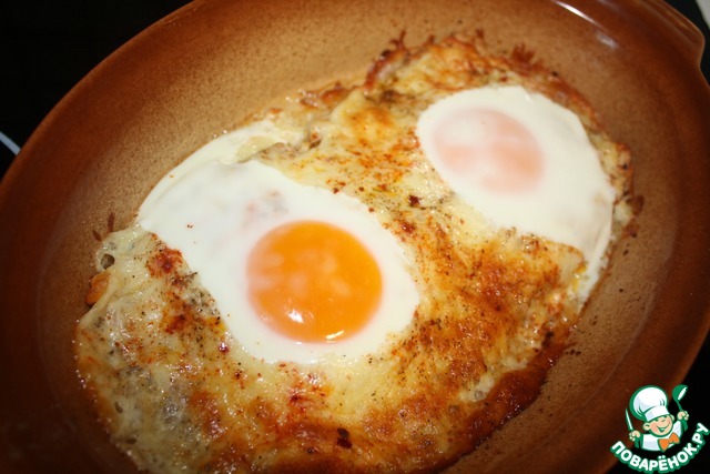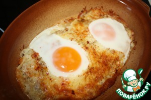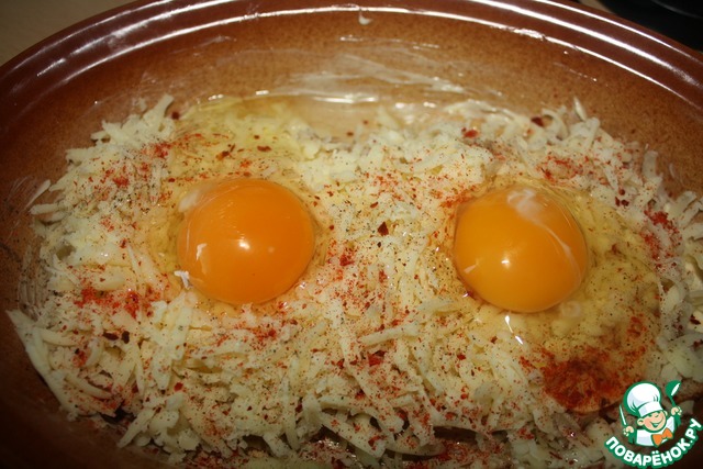 Затем сделать воронку в сыре и аккуратно вбить яйцо.