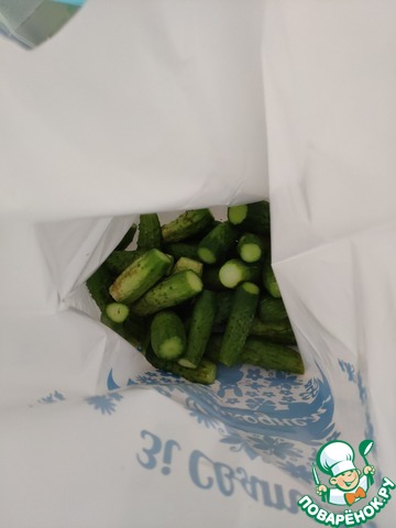 Подготавливаем огурцы: огурцы моем, отрезаем 'попки'. Если большие, можно разрезать вдоль на 2-4 части или наколоть вилкой (ножом).