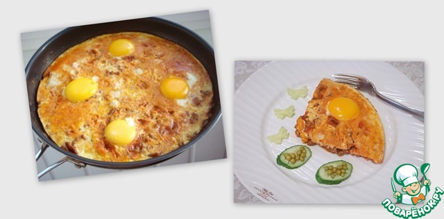 Закрываем крышкой и томим при слабом огне до готовности яиц. -