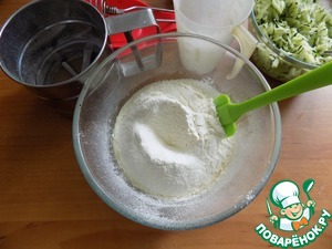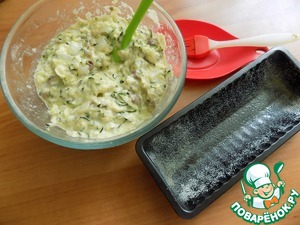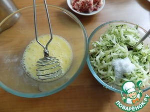 Отжимаем жидкость с кабачка и выкладываем в тесто. Вымешиваем тщательно.