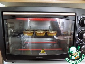 Ставим в разогретую духовку до т-190 С на 20 минут. У меня вот такой шкаф электрический, печёт очень быстро. Минут через 15 я проверила кексы "на сухую лучину". Тесто к лучине не пристаёт, но кексы внутри влажные от кабачка. Подержала в духовке ещё 5 минут, накрыв верх фольгой.