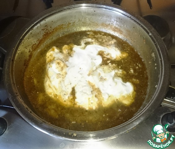 Добавляем кусочек сливочного масла. Масло загустит соус. Если любите очень густой соус - смешайте сливочное масло с небольшим количеством муки, просто вилкой. Получится масляно-мучной шарик. Если не ошибаюсь, называется ру. Добавьте в соус. Всё перемешиваем, даём закипеть, уменьшаем огонь и варим минут 5, постоянно помешиваем, чтобы не пригорел.