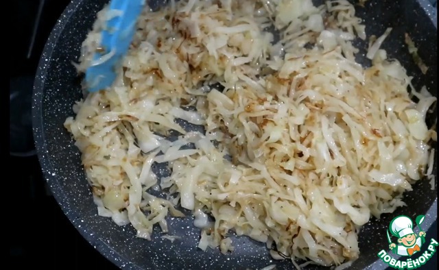Измельчите лук, нашинкуйте капусту. Поджарьте на сковороде. Посолите и поперчите по вкусу.