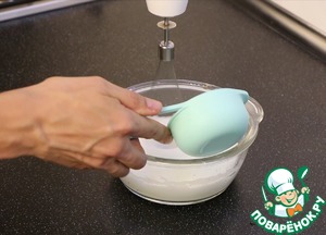 В сухой и чистой посуде взбиваю белок с щепоткой соли до мягкой пены.
