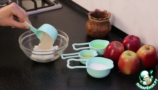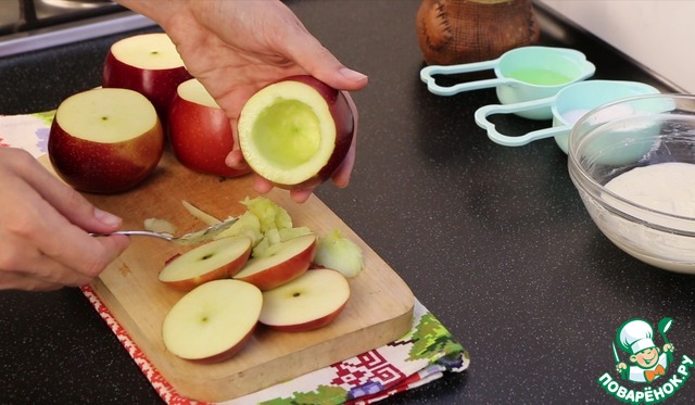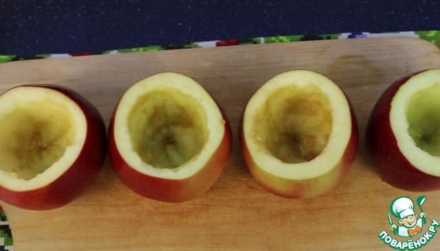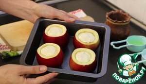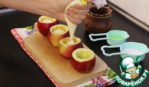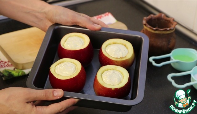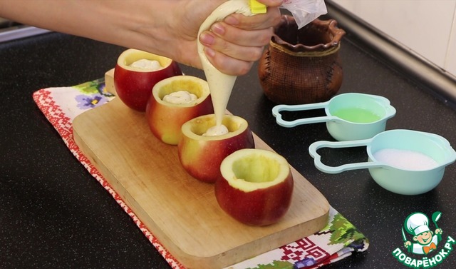 Заполняю яблочки творожком.