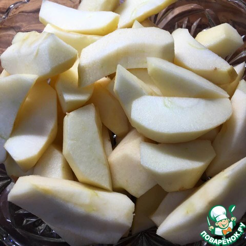 Нарезать крупными дольками. В очищенном виде их должно быть 500 грамм