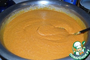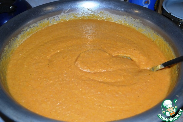 Измельчить остывшие овощи в блендере. Добавить выдавленный чеснок, соль, сахар, томатную пасту, чёрный перец, молотый кориандр, и уксус, хорошо перемешать. Варить на небольшом огне 20 минут, периодически помешивая. Во избежание ожогов ёмкость с икрой накройте крышкой! Все рекомендации и советы по приготовлению икры читайте здесь https://www.povareno k.ru/recipes/show/15 9036/
