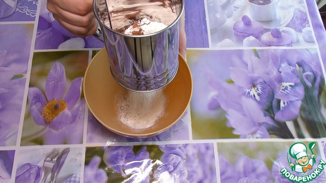 В отдельную миску просеиваем муку, какао, разрыхлитель.