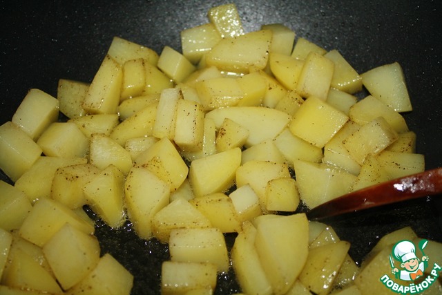 Раскалить масло и обжарить картофель на сильном огне около 6 минут.