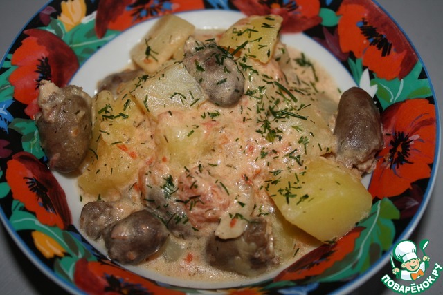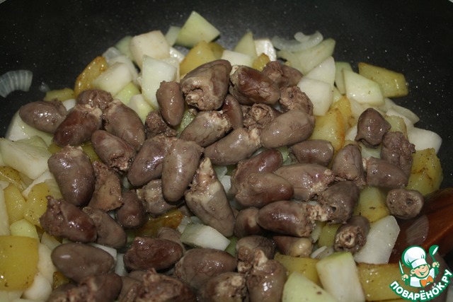 Очень вкусное и сытное блюдо. Для вегетарианцев можно готовить без добавления сердечек и тоже будет вкусно.