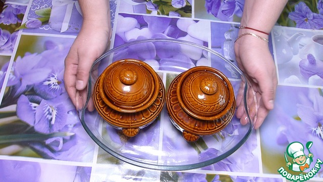 Укладываем в горшочки, накрываем крышками и оправляем в разогретую до 180 градусов духовку на 2 часа.