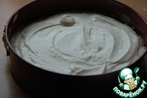 Достаём форму с тестом, добавляем сметанную массу и выкладываем. Разравниваем.