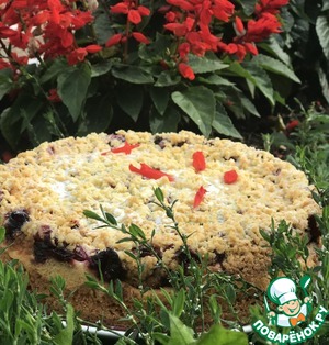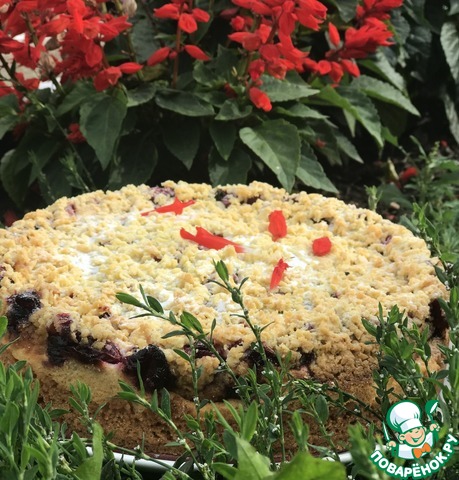 Замечательный летний пирог. Песочное тесто с хрустинкой, нежная начинка с вишнёвой кислинкой - слова сами рифмуются и получается песня лета. И неважно, что погода по-осеннему прохладная, аромат и вкус пирога хранит летнее настроение.
