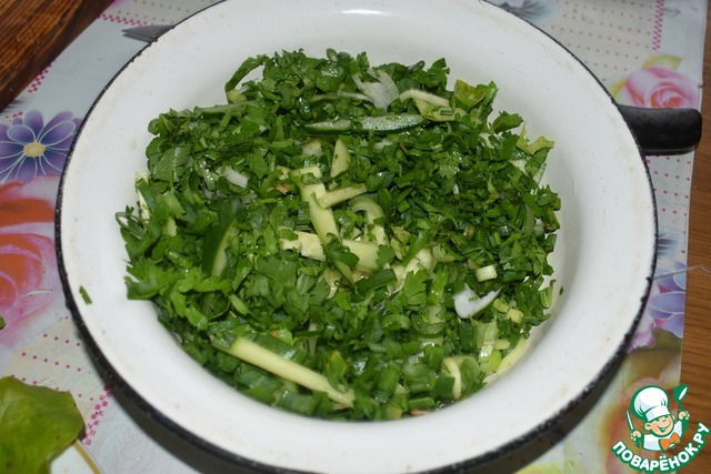 Мелко нарезать зелень, оставить несколько веточек для украшения.