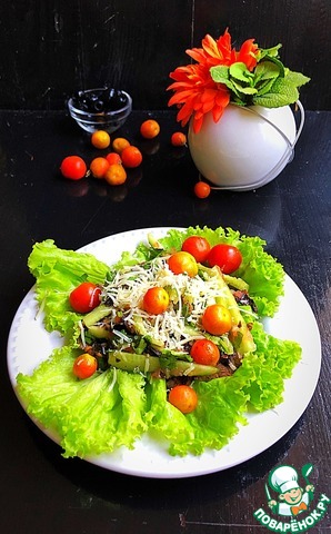 Очень интересный салат. Ингридиенты все знакомые, но сам салат необычный. Очень интригует. Обязательно приготовлю. Мне кажется такое блюдо можно смело поставить на праздничный стол.
