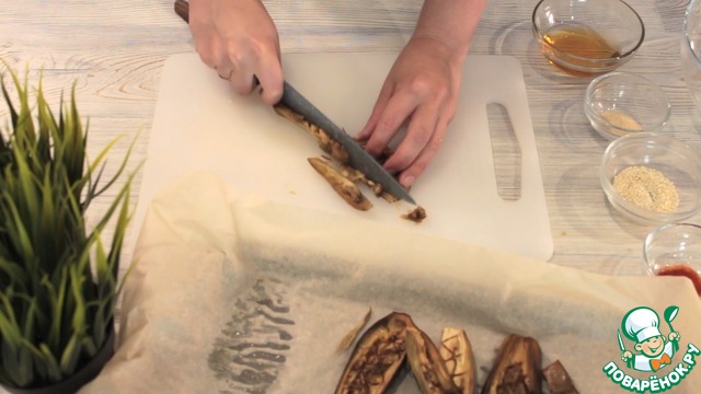 Баклажаны у меня маленькие, на то количество ингредиентов лучше брать среднего или большого размера.