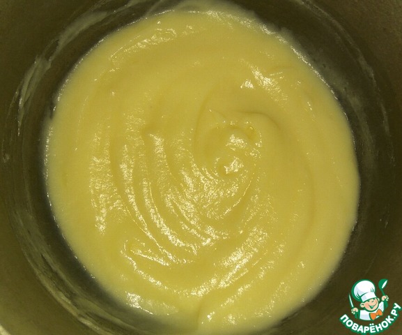Половину горячего молока добавить к яичной смеси, хорошо перемешать и вылить получившуюся массу обратно к остальному молоку.