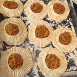 - Тесто слоеное (Любое, но дрожжевое красивее поднимается) — 500 г