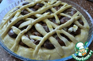 Тесто обмять и выложить в форму, растягивая руками, оставив часть для украшения.