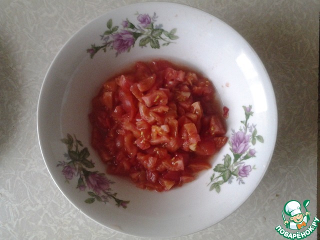 Помидоры очищаем от кожуры и нарезаем кубиками