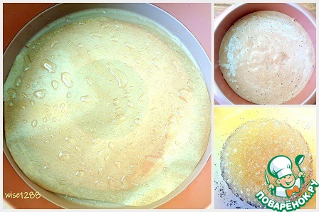 Форму для запекания (у меня 20 сантиметров) застелить бумагой для выпечки, смазать растительным маслом. Перелить тесто в форму. Желатин замочить в воде на 30 минут.
