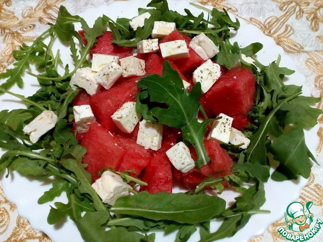 Рецепт «Арбузный салат с рукколой и фетой»: