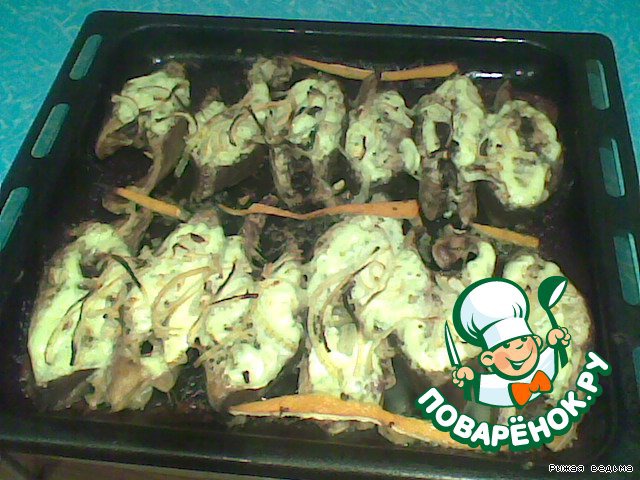 2. Чистим, отрезаем лишнее, режем на кусочки шириной где-то 2 см, выкладываем на противень.