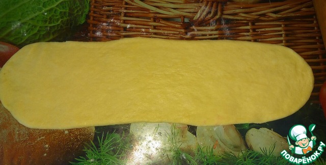 Каждую часть теста раскатать в полоску 0.5 см толщиной.