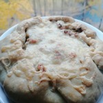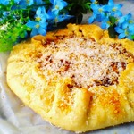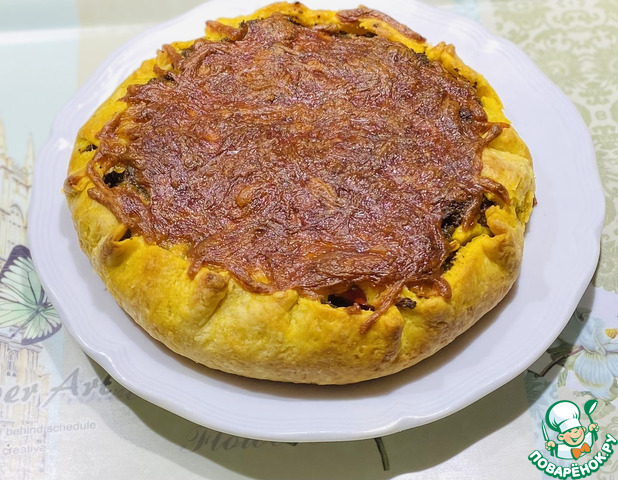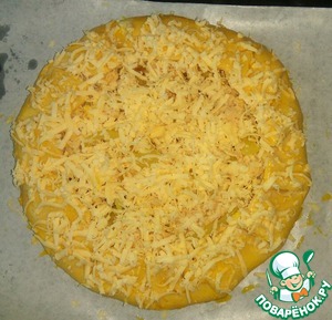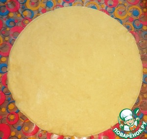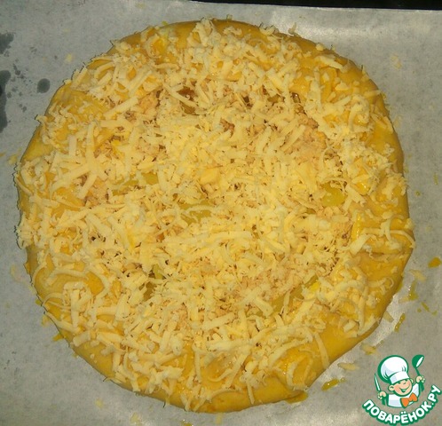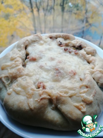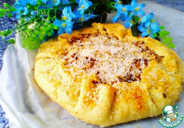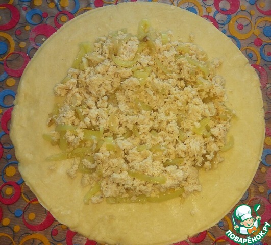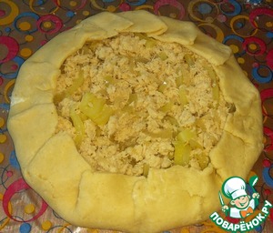 Собрать тесто по краям, формируя складочки. Центр с начинкой оставить открытым.