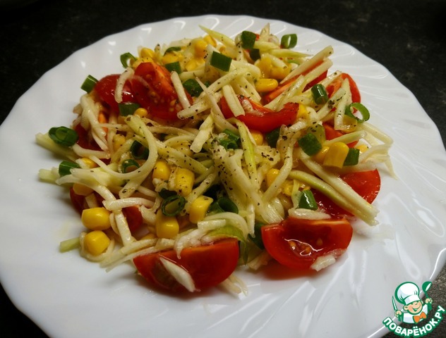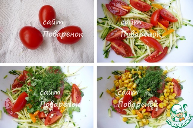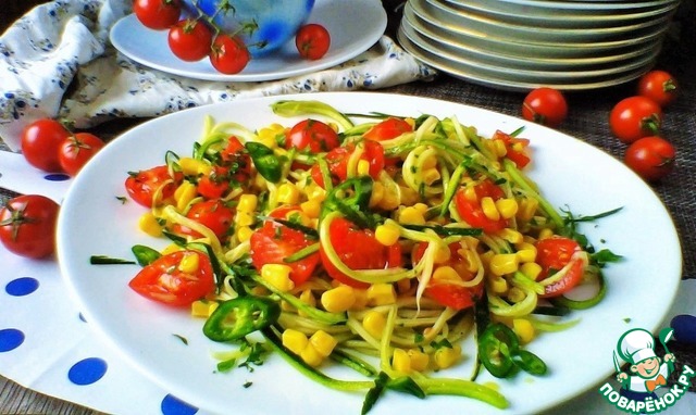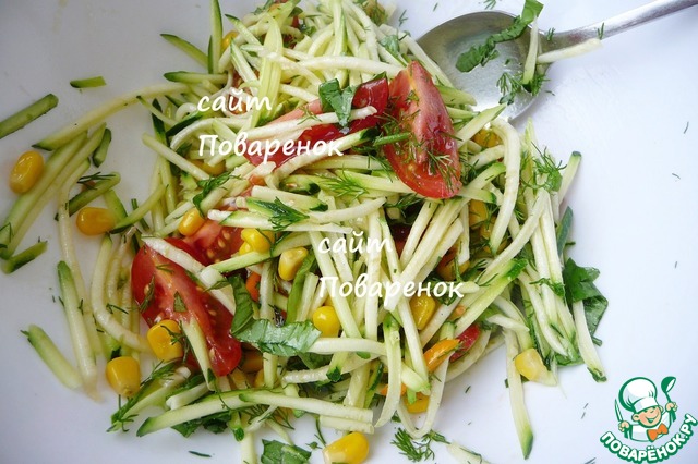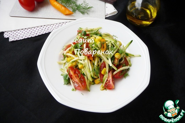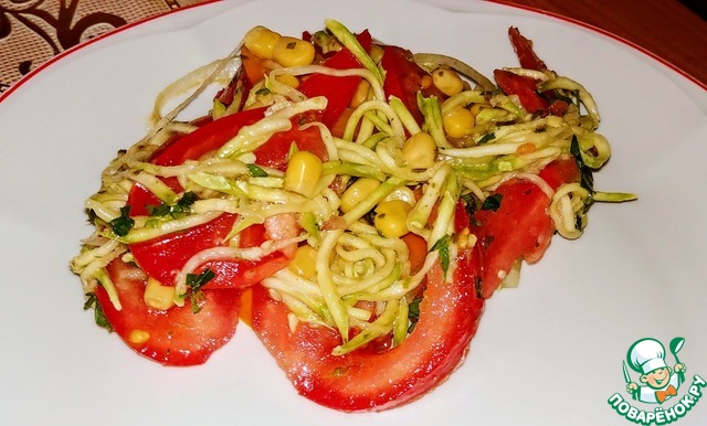 Рецепт «Салат из цуккини с помидорами и кукурузой»: