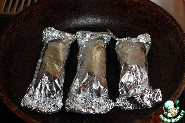 Кусок фольги смазать оливковым маслом. Положить палтус кожей вниз и сверху намазать пряное масло.