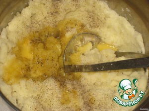 1 сырое яйцо слегка взбить и смешать с пюре, посолить и поперчить. -