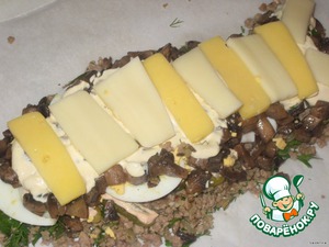 Прикрыть грибы пластиками сыра.