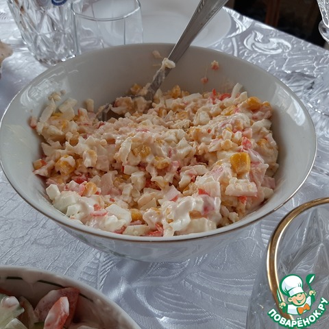 Легкий в приготовлении, вкусный в употреблении. Один из самых популярных салатов на праздничный стол. Враг для борцов с калориями, но какой все-таки вкусный!
